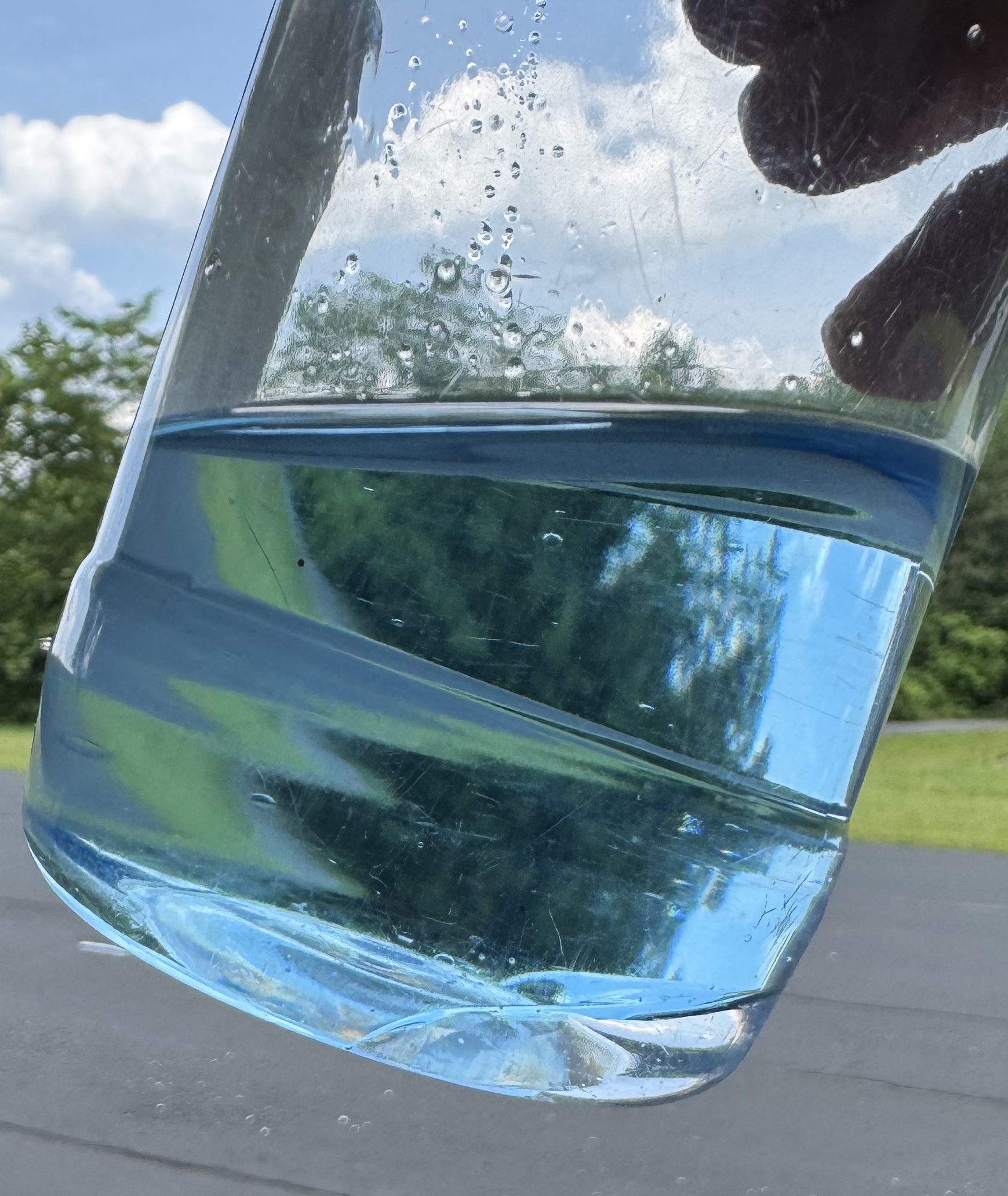Water in blue 100 octane low lead fuel (100LL) looks exactly like an air bubble, but on the bottom of the container.