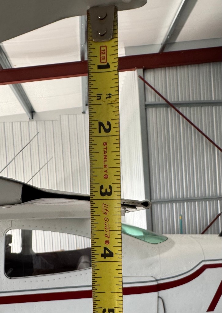 Photos: the aileron deflected up (left bank) to its maximum is about 3″, while down (right bank) is only about 2.5″.